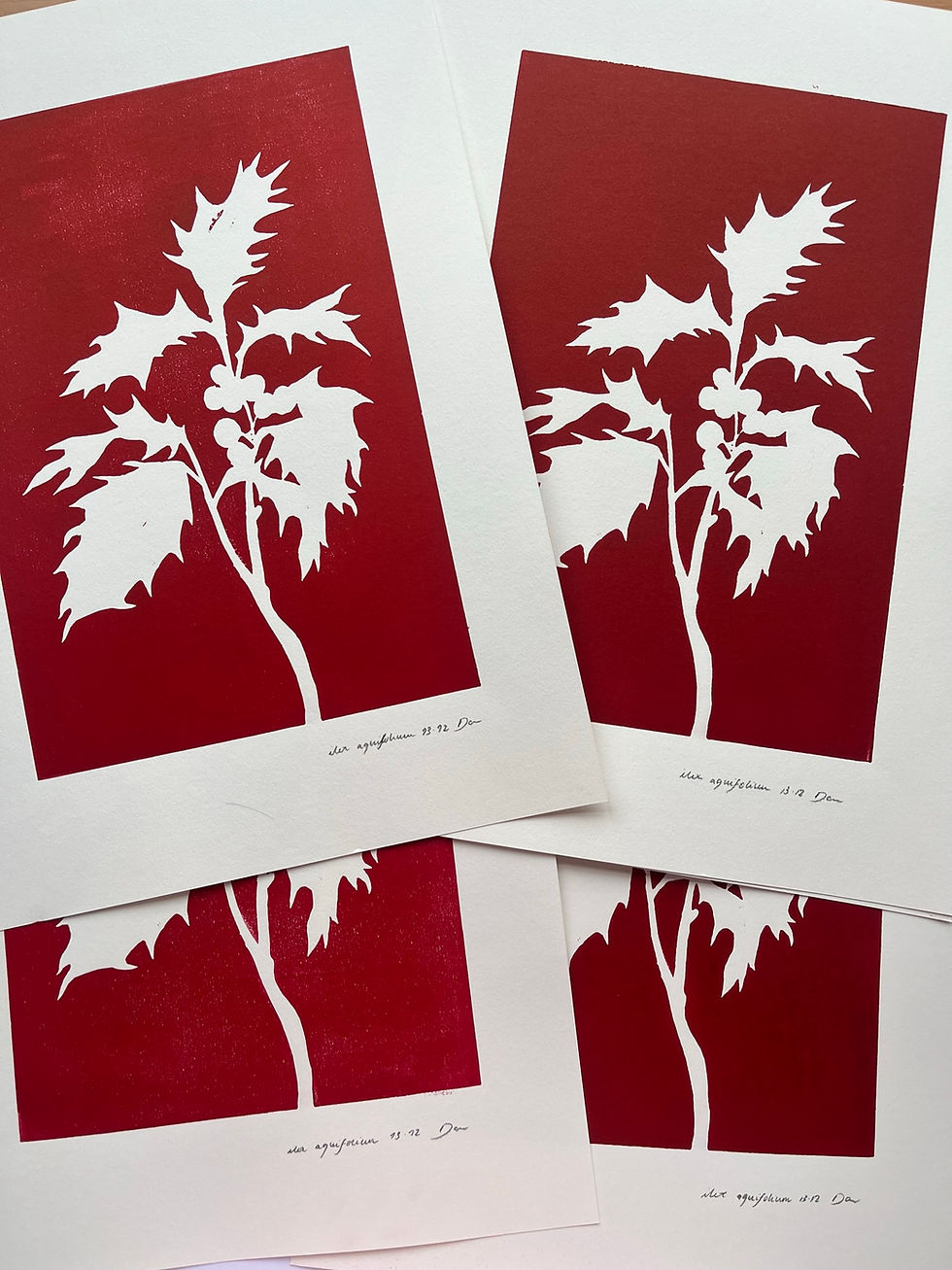 'Ilex Aquifolium' Holly Christmas Flower Lino Print